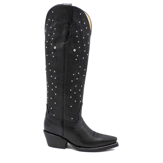 Bota Alta Negra con Remaches para Dama